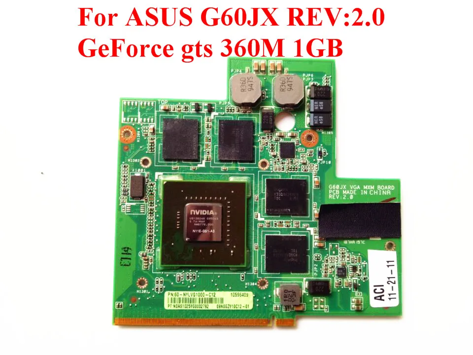 Main Features : For ASUS G60JX REV:2.0 Video card N11E-GS1-A3 360M 1GB PN:60-NYVG1000 Video Card Board 100% Tested